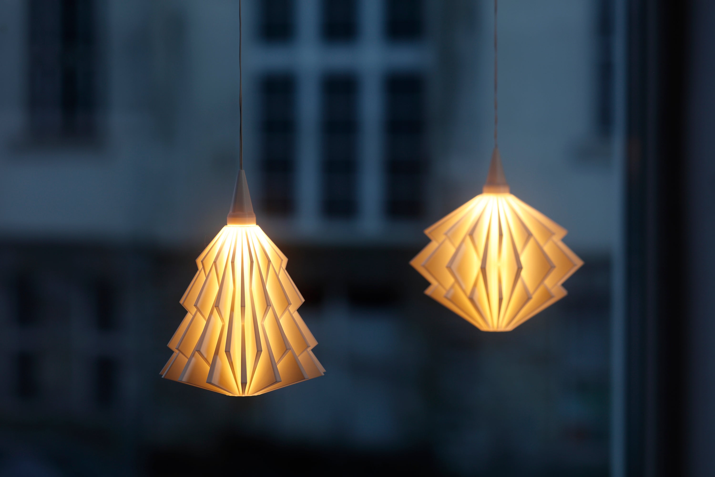 Die Lampenschirme werden aus PLA, einem umweltfreundlichen und nachhaltigen Material, hergestellt. Dieses biologisch abbaubare Kunststoffmaterial wird im 3D-Druckverfahren verarbeitet, um präzise und einzigartige Designs zu ermöglichen.