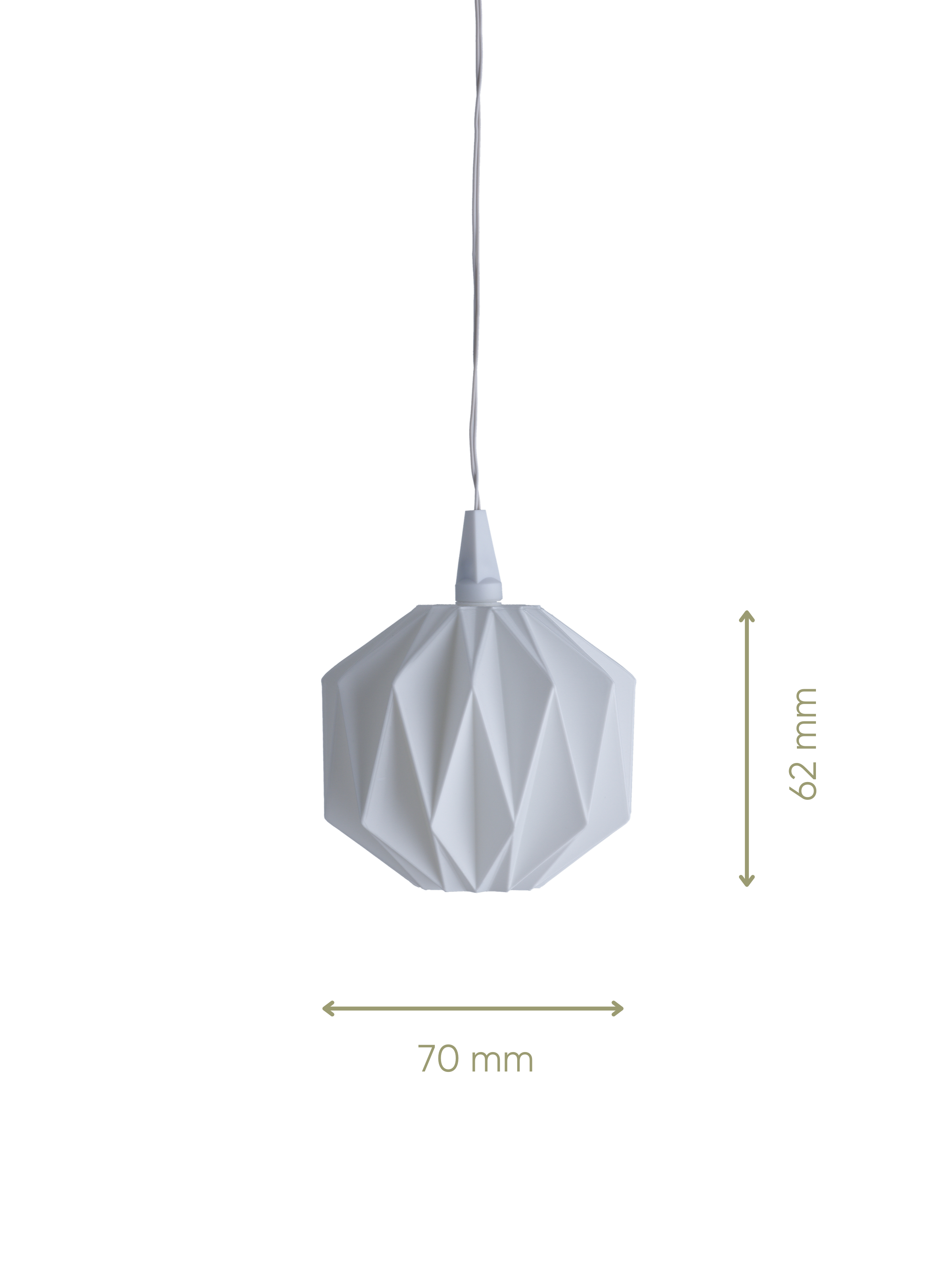 Dieser Lampenschirm ist für die Aufhängung des Miniatursterns designt (⌀ 8cm). Im Lieferumfang ist nur der Lampenschirm in weißer Farbe enthalten. Die Halterung des Miniatursterns, sowie das Netzteil muss vorhanden sein. Eine Anleitung zum Tauschen der Lampenschirme findest du hier.