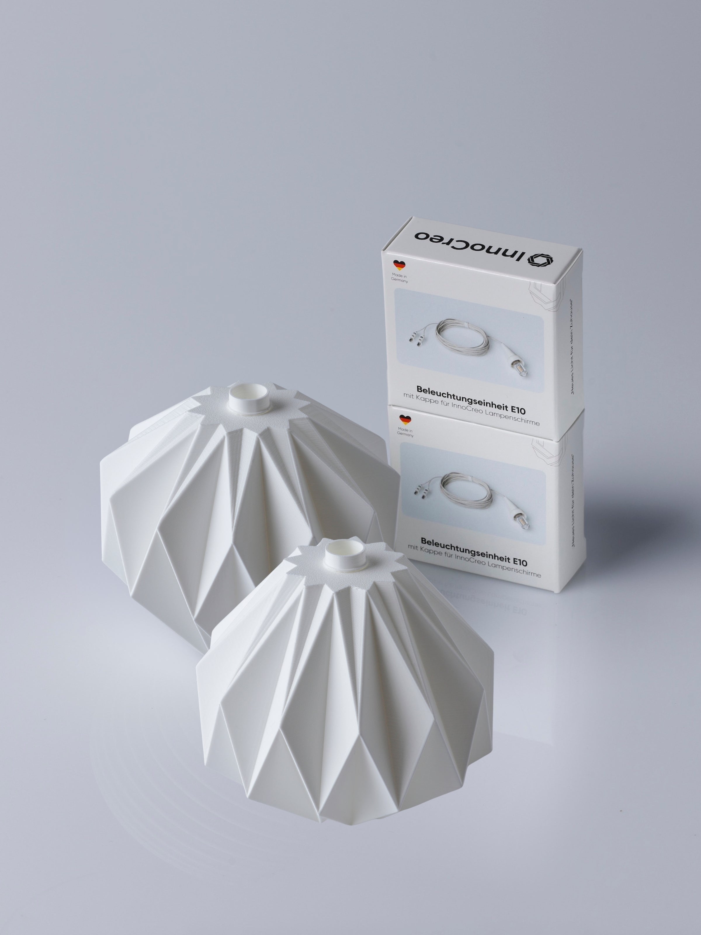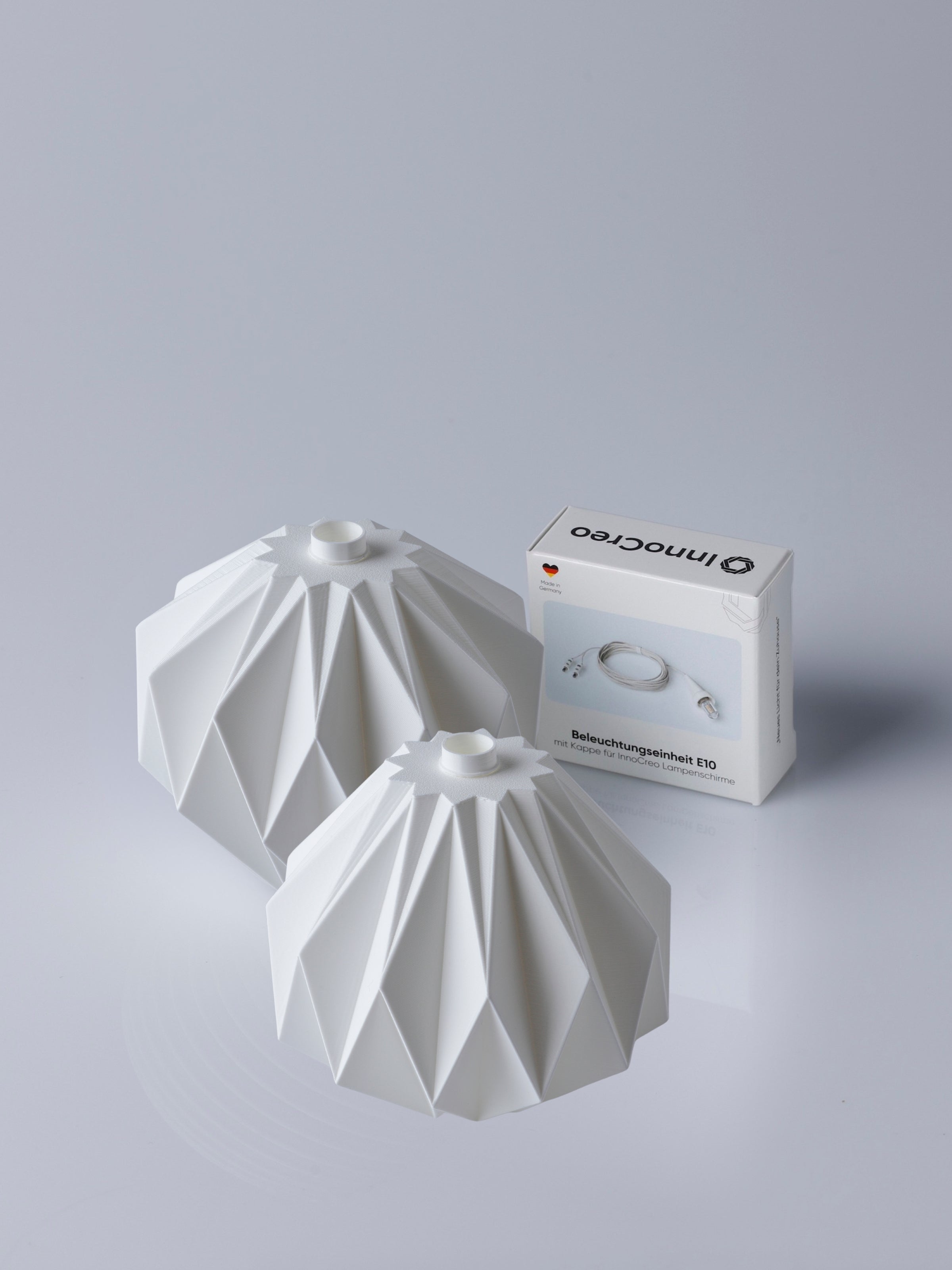 Diese Lampenschirme sind für die die Beleuchtungseinheit E10 oder die Aufhängung des Sterns Modell A1(e/b) (⌀ 13cm) mit LED designt. Im Lieferumfang sind nur die Lampenschirme in weißer Farbe enthalten. Eine Aufhängung, sowie das Netzteil muss vorhanden sein. Falls du bisher keinen Stern A1 besitzt, findest du das passende Zubehör auch hier. Eine Anleitung zum Tauschen der Lampenschirme findest du hier.