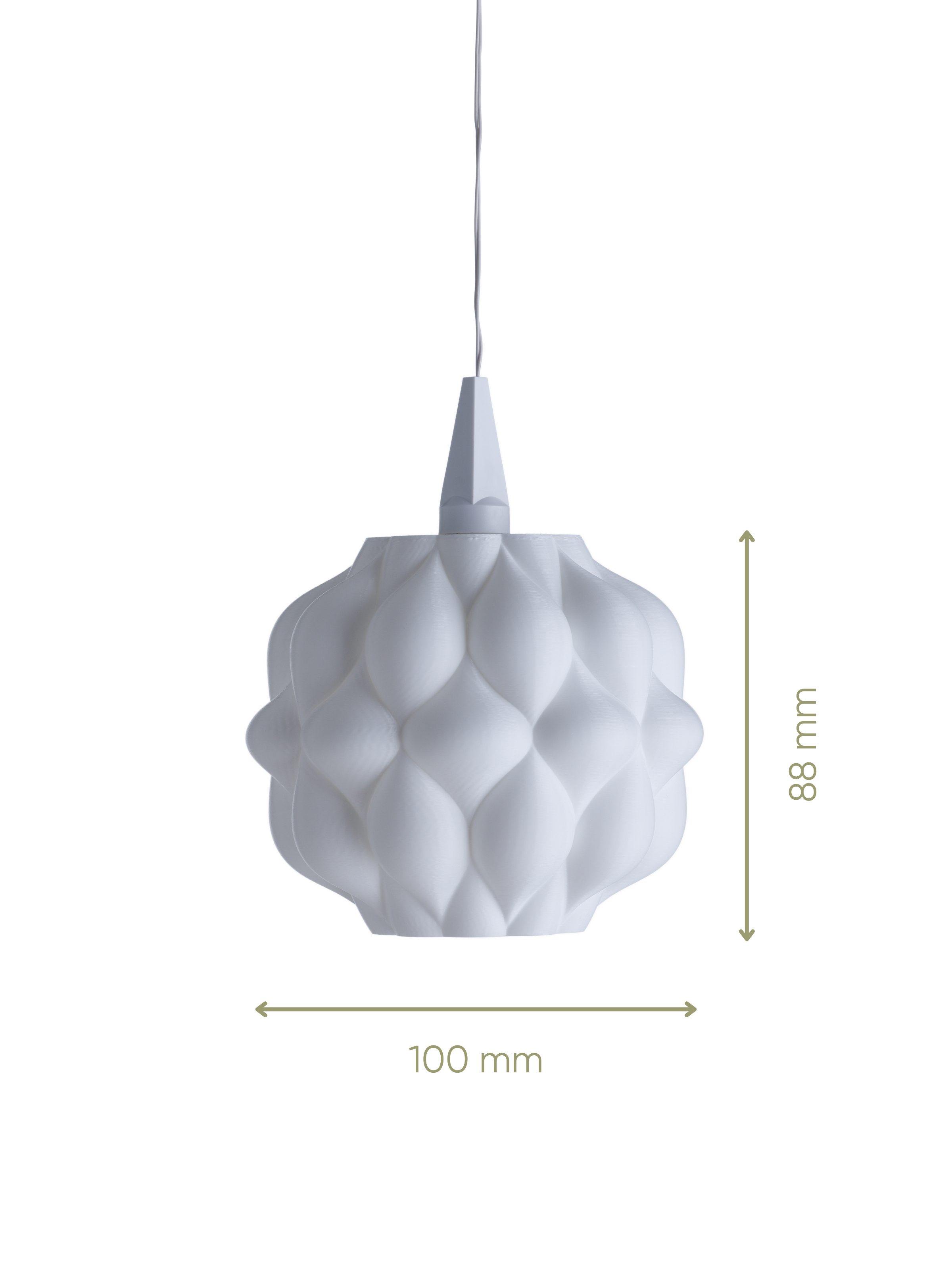 "Clara" besticht durch ihre sanft gewölbten, organischen Formen, die an weiches Gewebe erinnern. Diese einzigartige Struktur verleiht der glatten, weißen Oberfläche des Lampenschirms eine subtile, aber ausdrucksstarke Textur. Das Licht bricht sich in den abgerundeten Vertiefungen und erzeugt einen warmen, einladenden Lichteffekt, der jede Umgebung verzaubert. "Clara" ist ein Ausdruck moderner Eleganz und fügt sich nahtlos in verschiedene Einrichtungsstile ein. Dieses Modell ist perfekt geeignet, um allein als "Eye-Catcher" eine stilvolle Beleuchtungsatmosphäre zu schaffen.