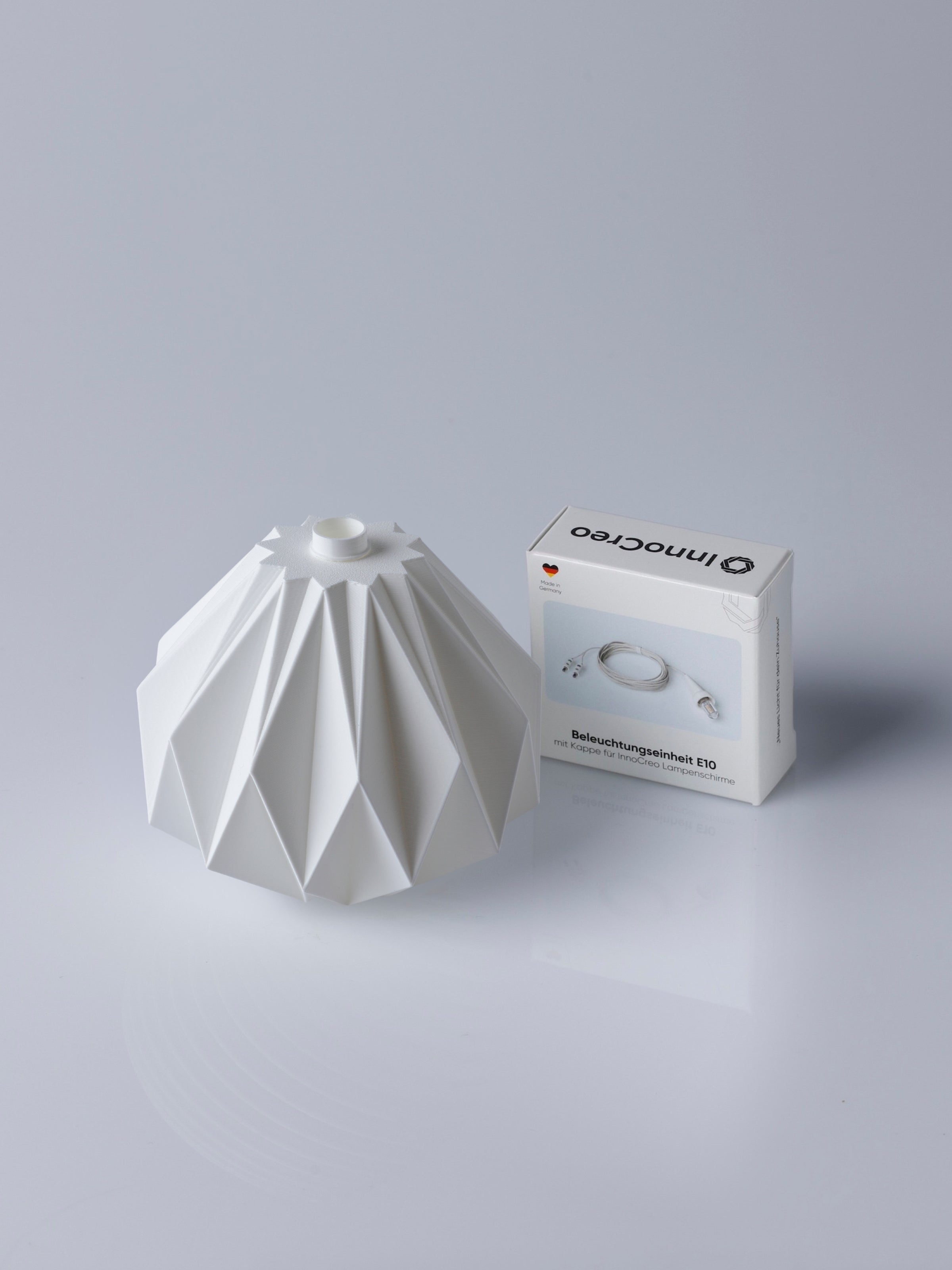 Die Lichtwirkung entscheidet, ob eine Lampe wirklich „gemütlich“ wirkt — deshalb sind unsere Lampenschirm klein Modelle auf warmes, indirektes Licht ausgelegt. Wir nutzen eine warmweiße E10 LED in Kombination mit einer passenden Beleuchtungseinheit E10, damit die Leuchte ein sanftes angenehmes Licht ausstrahlt. Ob als Fensterlampe oder dezente Deko Lampe im Wohnzimmer: als außergewöhnliches Wohnaccessoir wirken unsere 3D-Druck Lampen besonders schön.