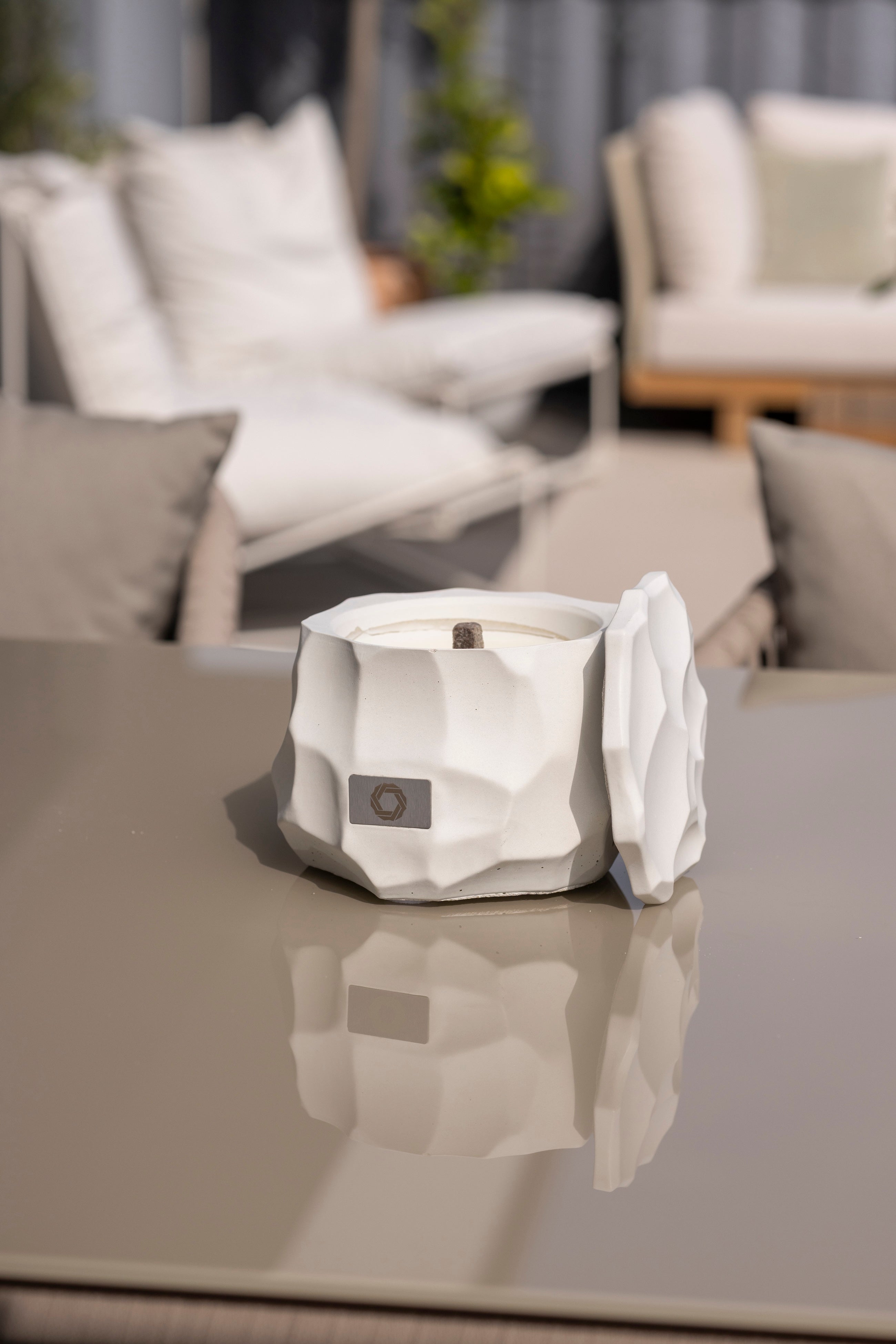 Unser Tischfeuer aus Beton bringt stimmungsvolles Licht in deinen Außenbereich. Die Outdoor Kerze aus Beton hat eine windfeste Flamme, sodass du sie auch als Windlicht verwenden kannst. Wir verwenden dafür einen speziellen Dauerdocht aus Holzfaser im Wachsfresser. Dieser bildet eine fackelähnliche Flamme, die du mit deinen alten Kerzenresten am Leben halten kannst. Gefüllt mit reinem Rapswachs hält die Dauerkerze für Outdoor viele Stunden. Mit dem passenden Deckel kannst du die Flamme sicher löschen. Ideal als Tischdekoration, Gartenlicht oder stilvolles Element für gemütliche Abende im Freien.